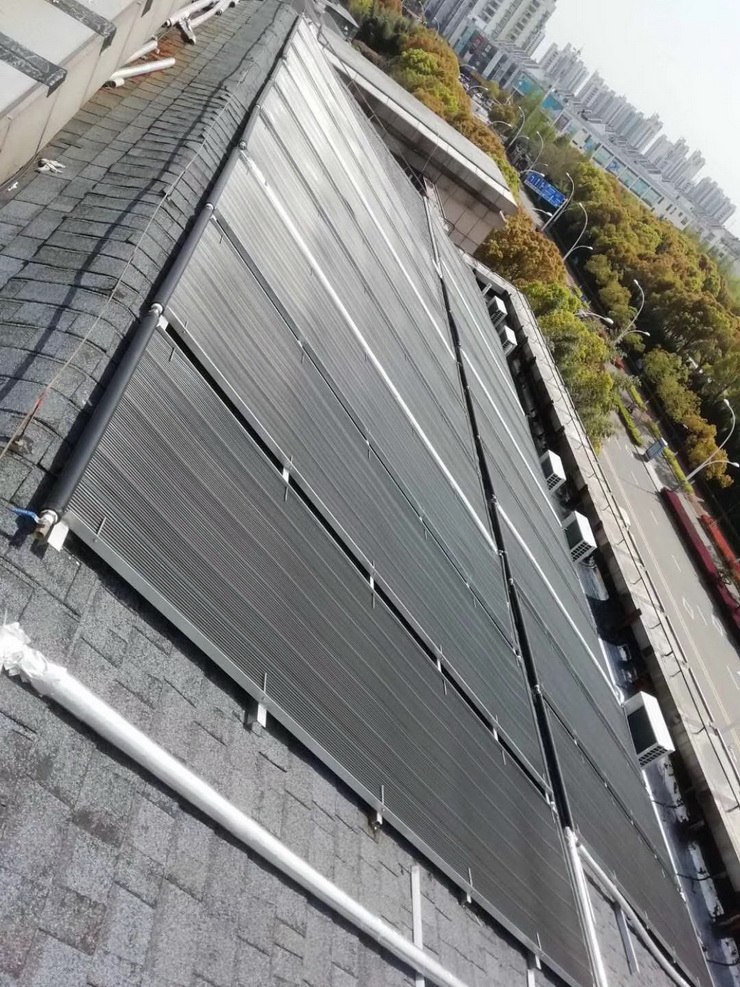 由我司安裝的太陽能加熱系統(tǒng)(游泳池加熱和淋浴系統(tǒng)兩用),已驗(yàn)收并投入使用中。今天測(cè)試:現(xiàn)室外氣溫16℃,熱水出水溫度55℃。